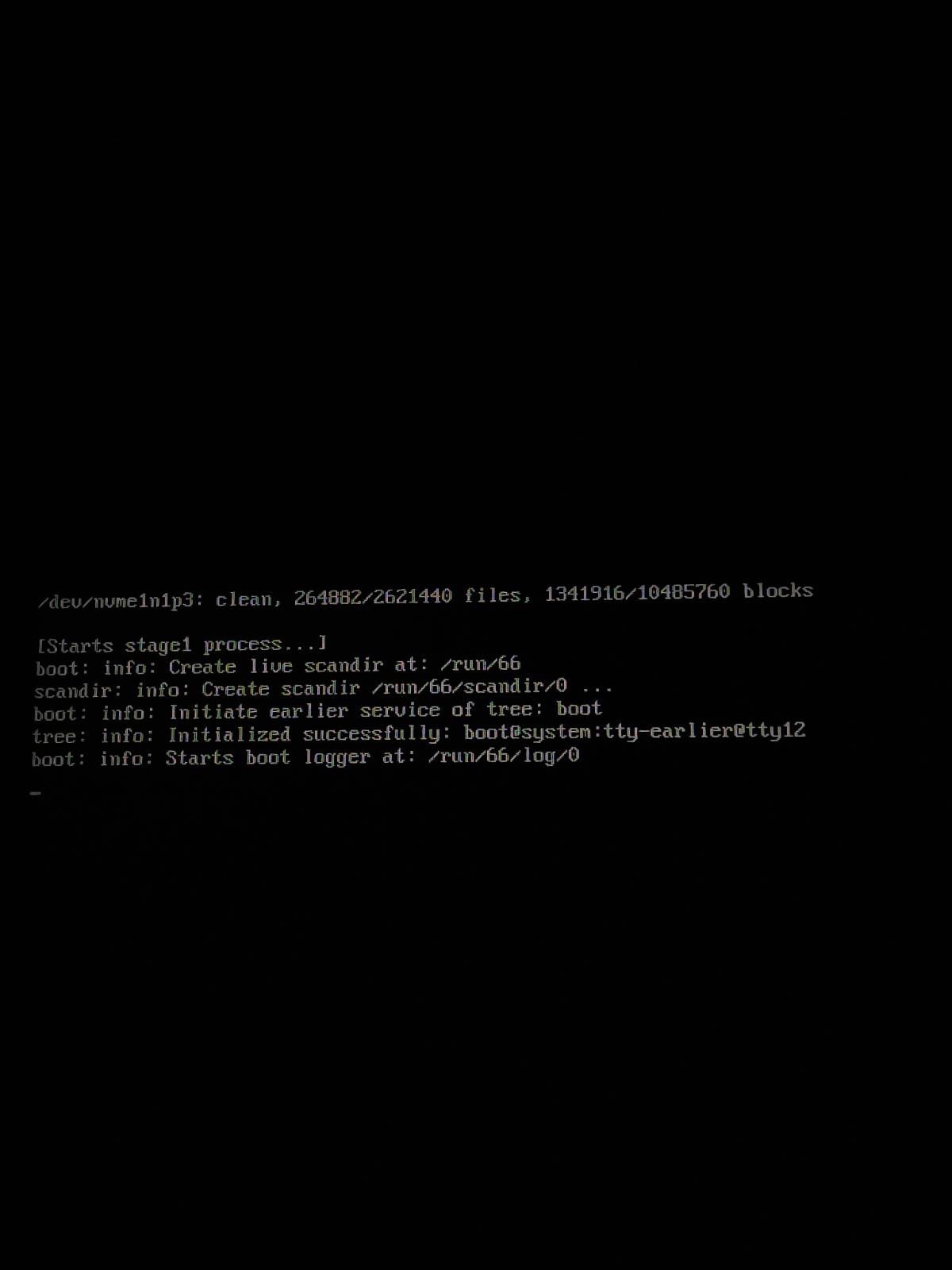 After that on reboot grub works, I boot into the system, and encounter new errors. First when I first figured out grub, I got a kernel panic that didn't go away, but let's assume it's a pure fluke. The second and third time I successfully pass the grub stage, but I get another problem that I can't solve, see photo for details..